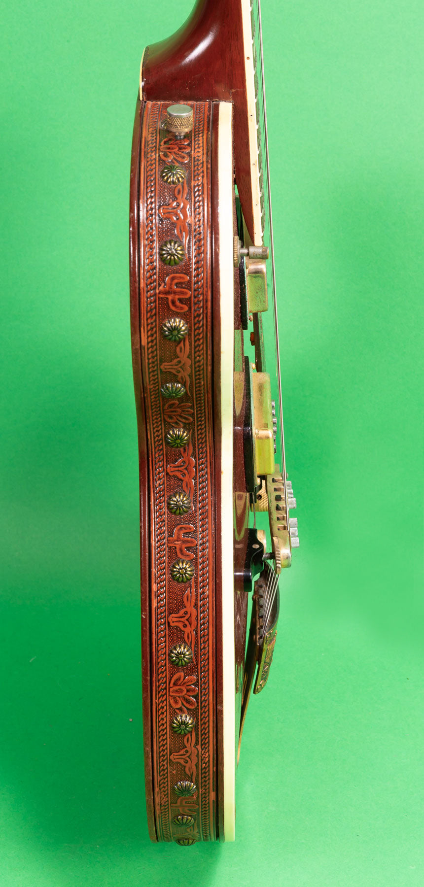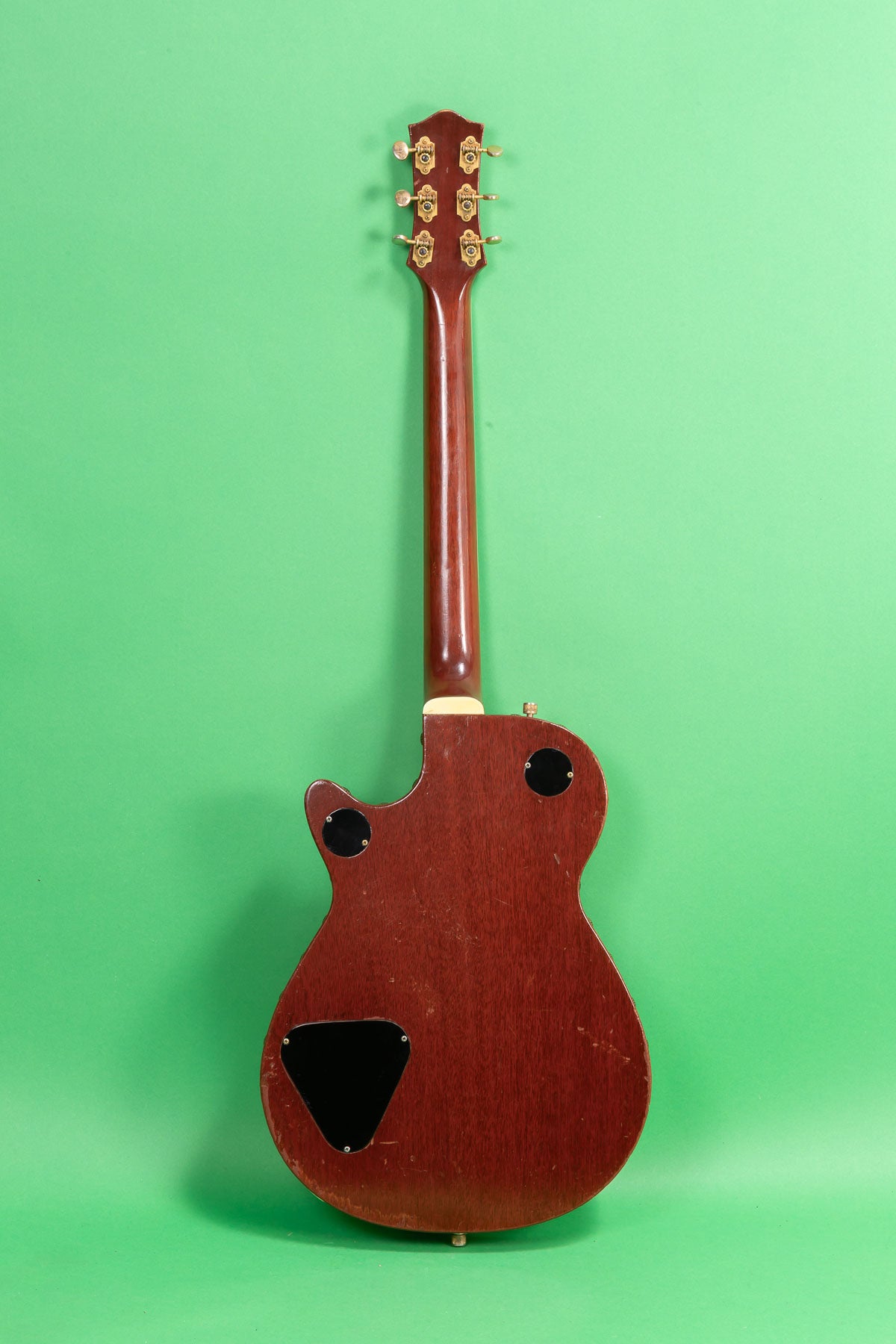 Do you like the taste of leather, or just some on your guitar. The ROUNDUP model from Gretsch has to be one of the most fun and original guitar models ever offered. This guitar is still in pretty nice original condition. The pots have been replaced and rewired. It is original otherwise and includes the original tweed case and two western motif leather guitar straps.