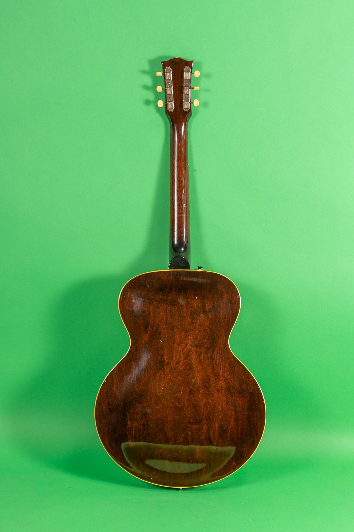 Circa 1963 wide neck version of this entry level archtop from Gibson. This is a nice clean and easy playing guitar. The is a strap button modification, see photo. There is very little wear or damage.