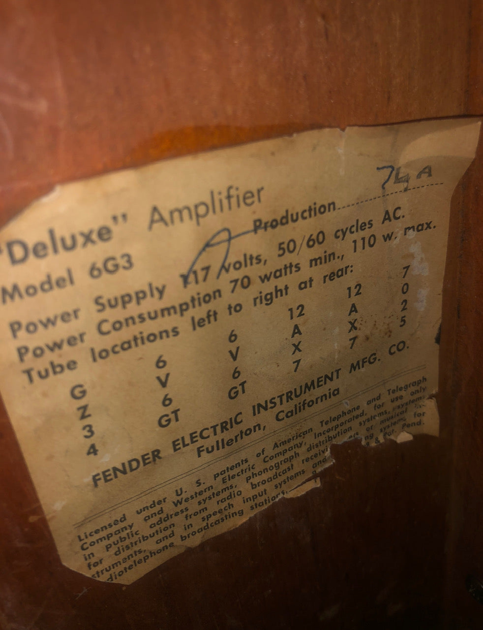 This Deluxe amp will need nothing other than Volts .It is ready.... really ready. This one is from 1961 and pretty original including the footswitch. The speaker is the right one but from later in 1962 so started elsewhere but now is here. A padded TUKI cover is included too.