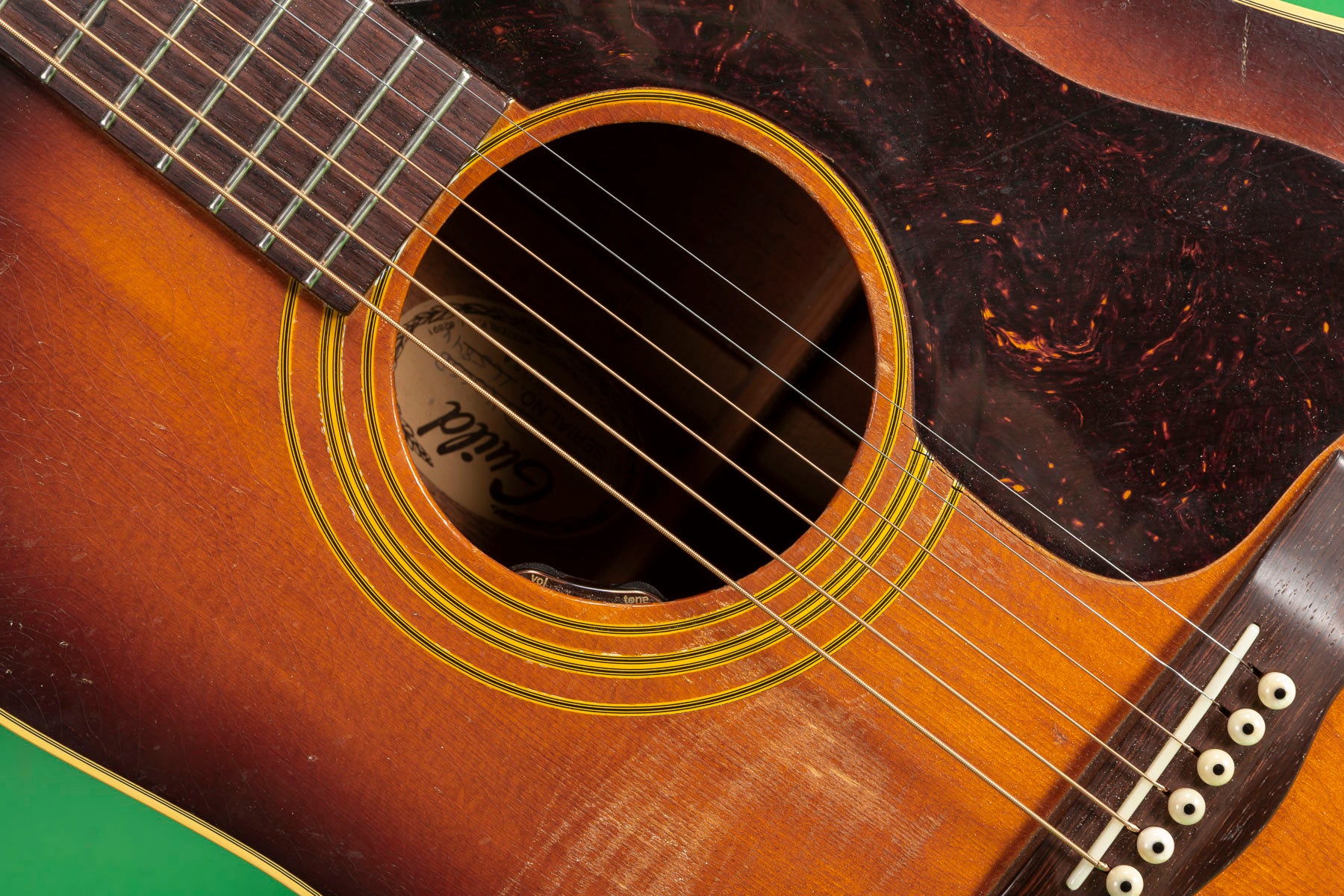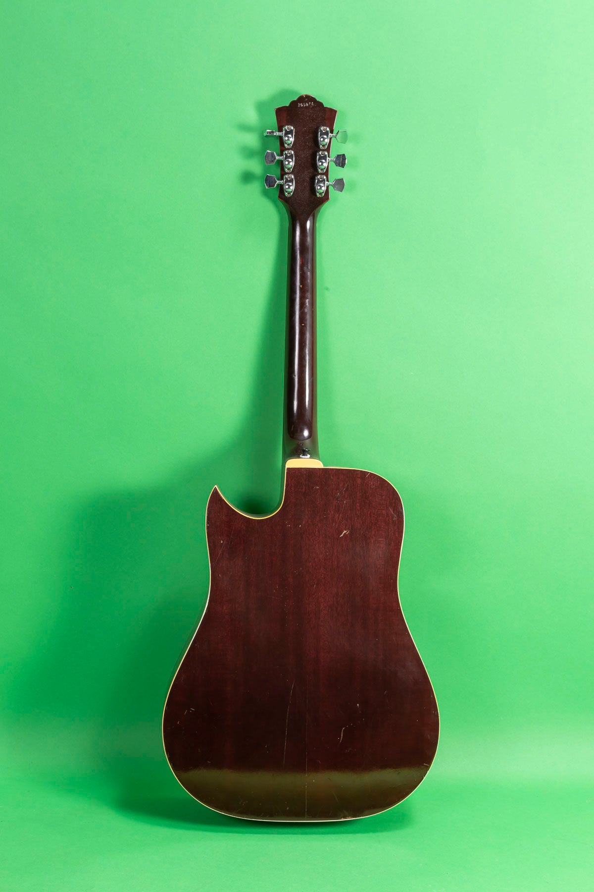 You do not see these every day except at the moment, I do. This guitar has a really good pickup system installed with a volume and tone control in the sound hole and plugging in at the end pin. It does sound good plugged in, I tested it. This does not need a neck reset and there is a good amount of saddle. There is normal wear and the original case is very worn but functional. The frets are large and in good shape. They could be original frets but I am not sure. The sunburst on this is nice and subtle, well done!